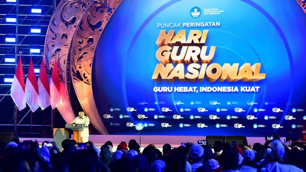 President Prabowo Subianto, on Friday (11/28), attended the 2025 National Teachers’ Day Commemoration Peak Ceremony, held at the Indonesia Arena, Jakarta. The event, carrying a theme “Great Teachers, Strong Indonesia,” served as a moment to honor the role and dedication of educators in developing the nation’s future generations.